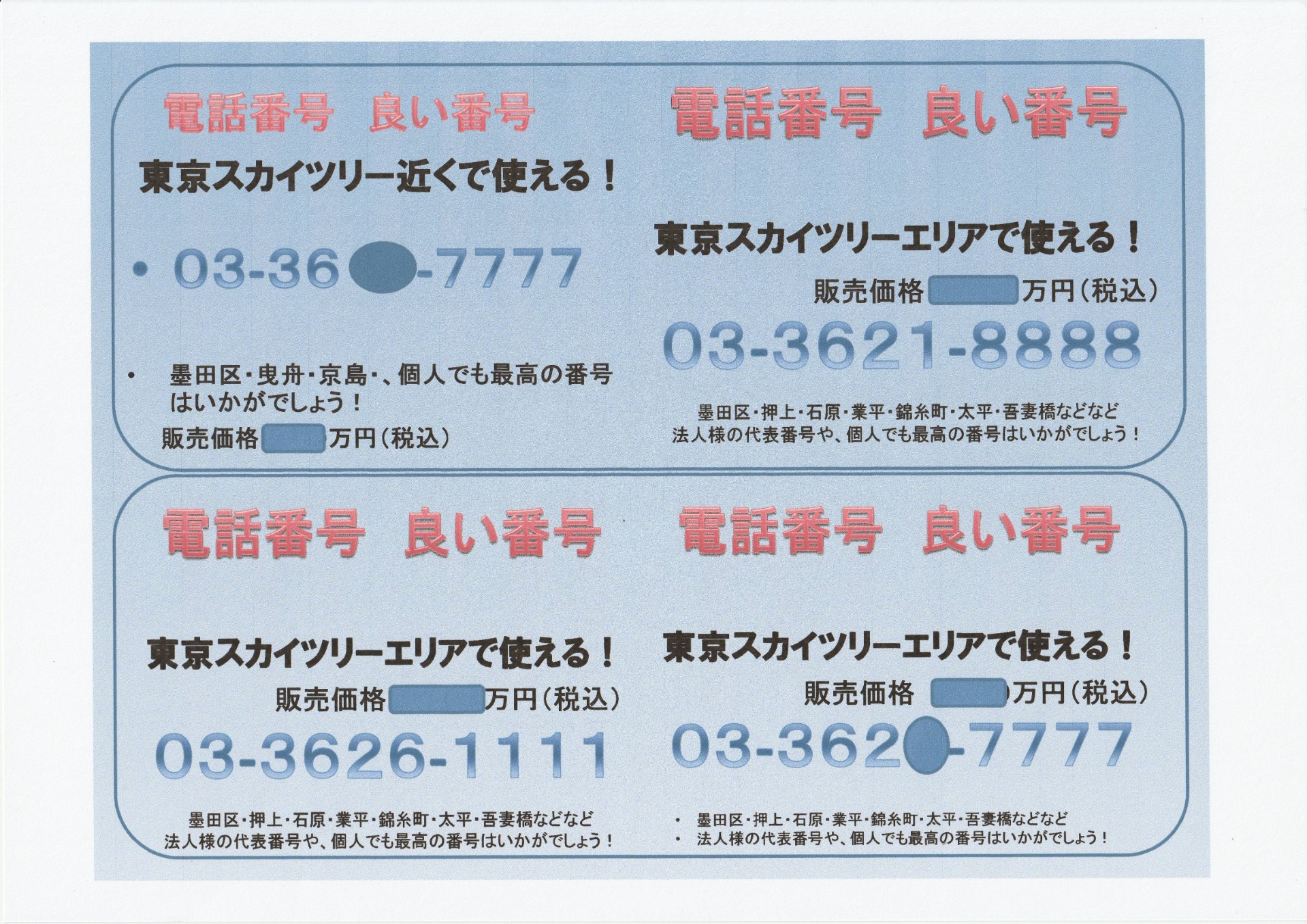 電話良番・覚えやすい番号・電話番号・墨田区良番あります!